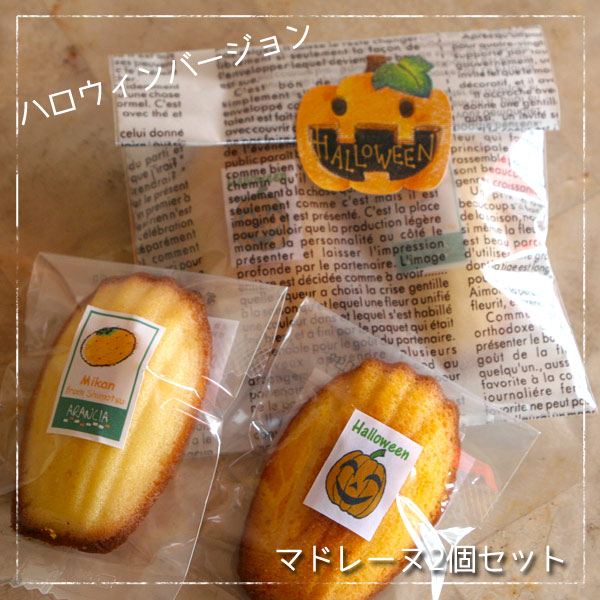 ハロウィンマドレーヌプチギフト☆カボチャのマドレーヌと季節フルーツを焼き込んだマドレーヌ2個セット(焼き菓子)