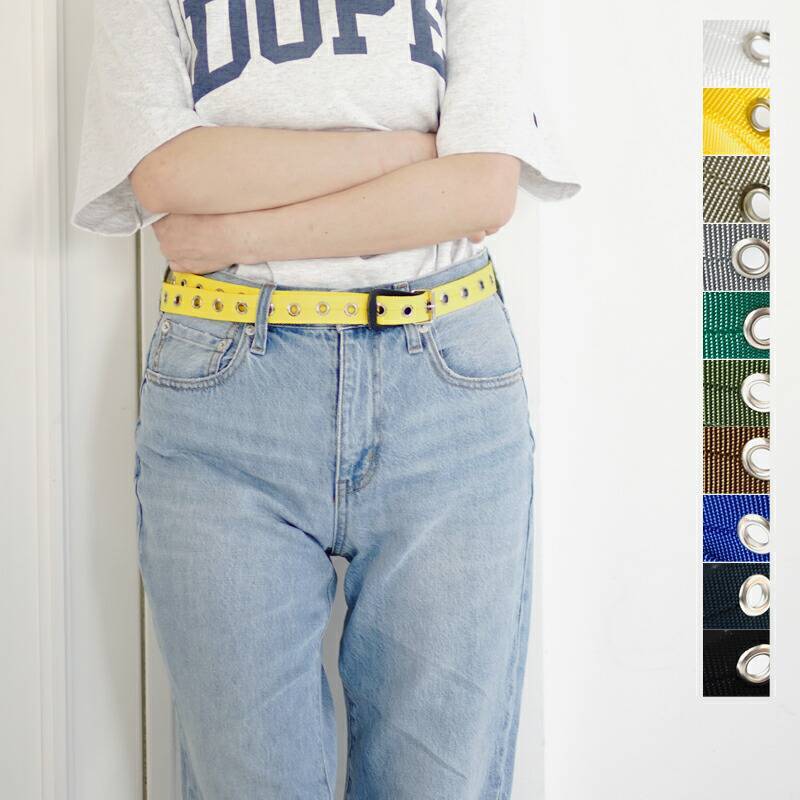 NECESSARY or UNNECESSARY(ネセサリーオアアンネセサリー)よりナイロンベルトのご紹介です。発色の良いナイロンとハトメが印象的な細めの作りで、フリーサイズのロングタイプなので腰から垂らして着用すればアクセサリーとしても良いアクセントになります。