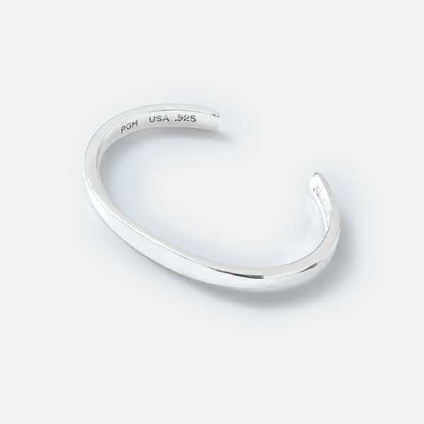 STUDEBAKER METALS(スチュードベーカーメタル) より、シルバーバングル“WORKSHOP CUFF”のご紹介です。シルバー925を使用したフラットタイプのバングルです。厚みがあり、適度なボリューム感がメンズライクでクールな雰囲気。表面はハンマーで細かく叩かれており、ハンドメイドの温もりを感じます。