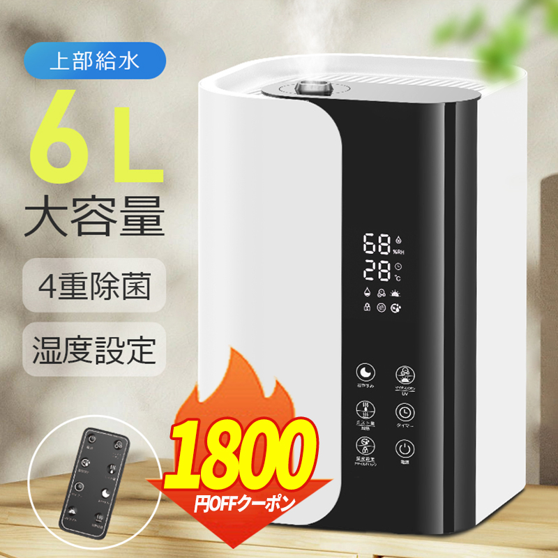 「クーポンで6,180円」加湿器 大容量 空気清浄 ハイブリッド加湿器 自動湿度調節 四重除菌 スチーム式 UVライト 超音波式 次亜塩素酸水対応