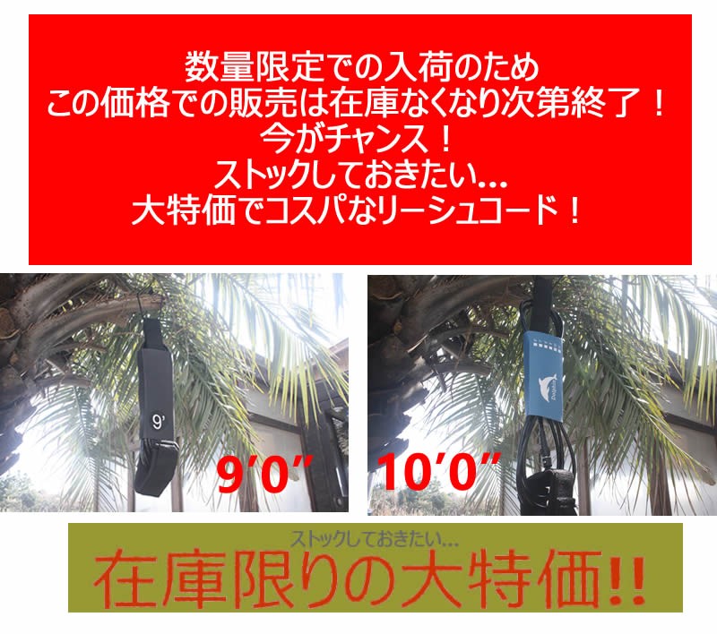 【新品アウトレット】Dolphin(ドルフィン)リーシュ LONG/SUP 兼用 Leash code [BLACK] 10’0" ストレート リーシュコード