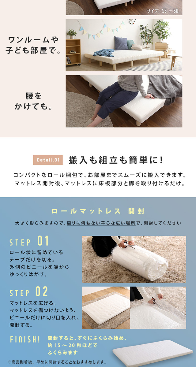 脚付きマットレス ウレタンロール セミシングル ベッド マットレス マットレスセット シングルベッド 脚付きウレタンロールマットレス