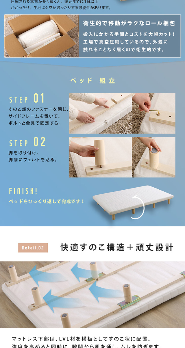 ロール梱包でのお届けなのでお部屋までスムーズに搬入可能、組み立ても簡単です!