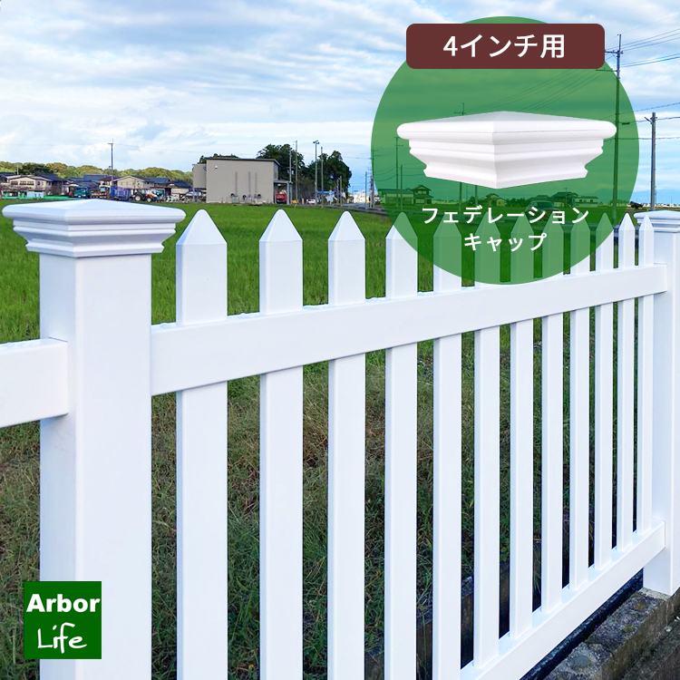 キャップ フェンス 柱飾り ホワイト 白 DIY PVC 洋風 アメリカンフェンス ハンドレールフェンスT型 フェデレーションキャップ4インチ バイナルフェンス