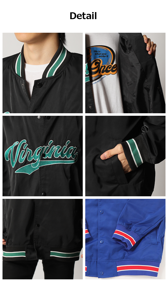 スタジャン メンズ 半額セール 刺繍 リブライン ビッグシルエット ナイロンジャケット ブルゾン 軽アウター 春 秋/爆買