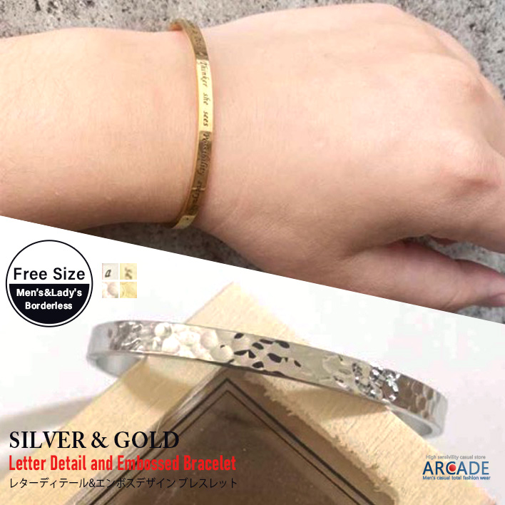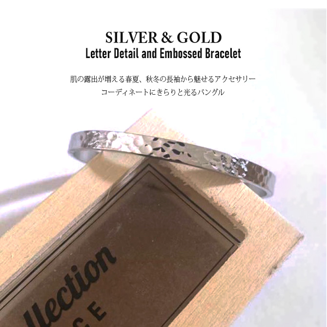 バングル シルバー ゴールド メンズ レディース ステンレス バングル 槌目加工 エンボス アクセサリー/爆買