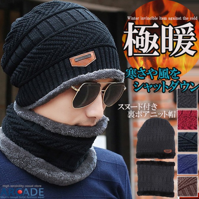2点セット 裏ボア ニット帽 & ネックウォーマー スヌード マフラー 男女兼用 帽子 メンズ レディース メンズファッション 小物 秋冬/爆買