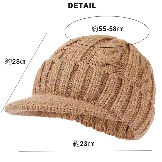 コスパ抜群のあったかニットキャップ 裏ボアつば付きニット帽