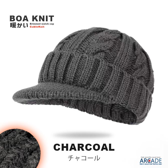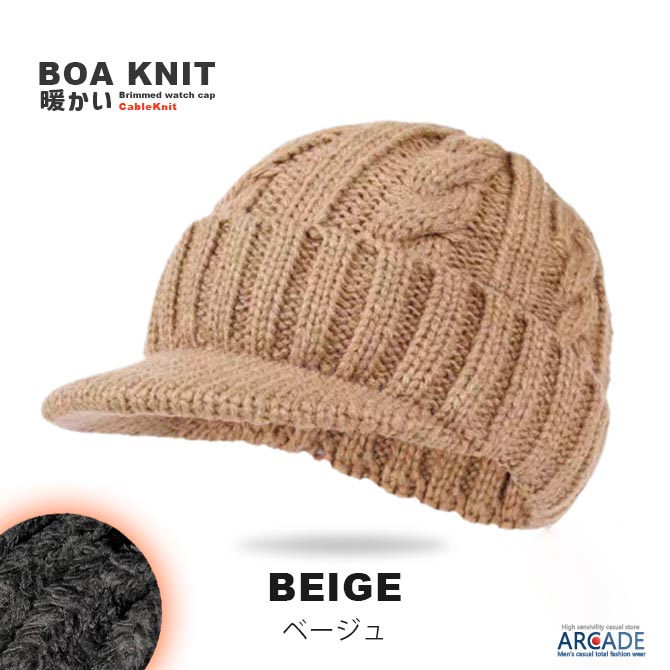 裏ボア ニット帽 ケーブル編みツバ付きニット帽 暖かい帽子 秋冬 防寒グッズ メンズ レディース ニットキャップ ワッチキャップ ARCADE アーケード/爆買