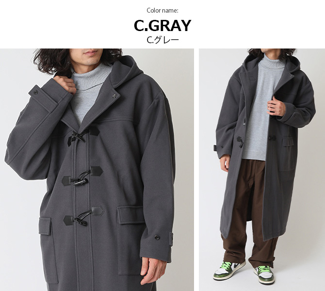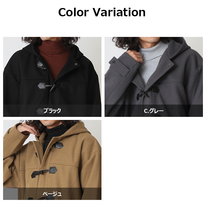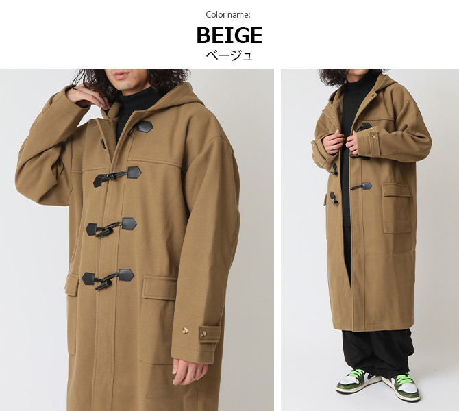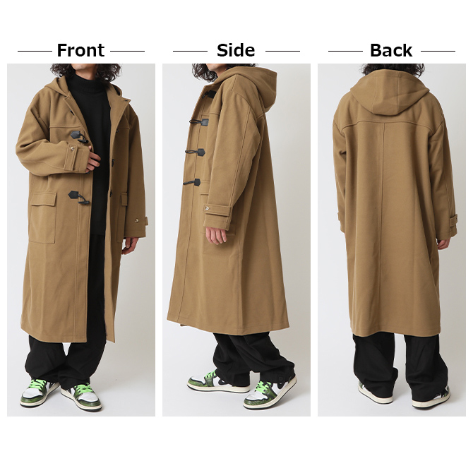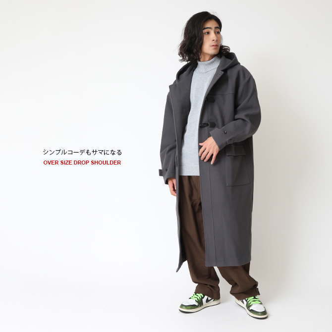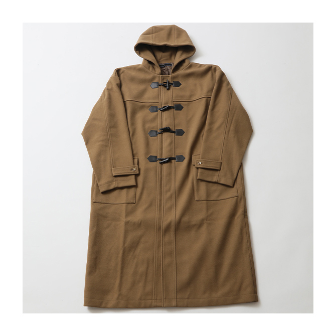 着丈長めのロングレンジ、暖かさを感じるウーリーなダッフルコート。