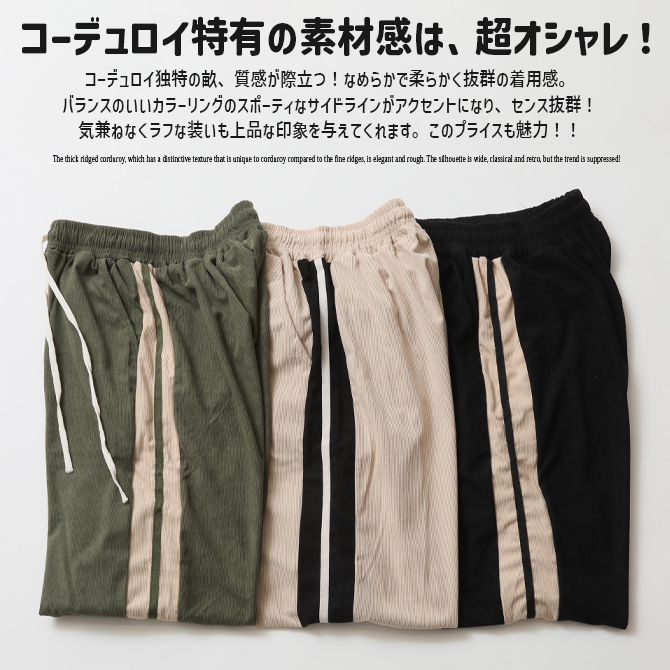 ズボン コーデュロイ パンツ メンズ ジャージ サイド ラインパンツ ワイドパンツ イージーパンツ メンズ ボトムス トラックパンツ おしゃれ かっこいい/爆買