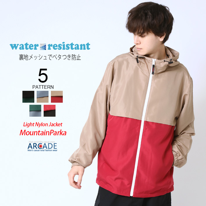 春に最適な機能的なナイロン素材マウンテンパーカーブルゾン。