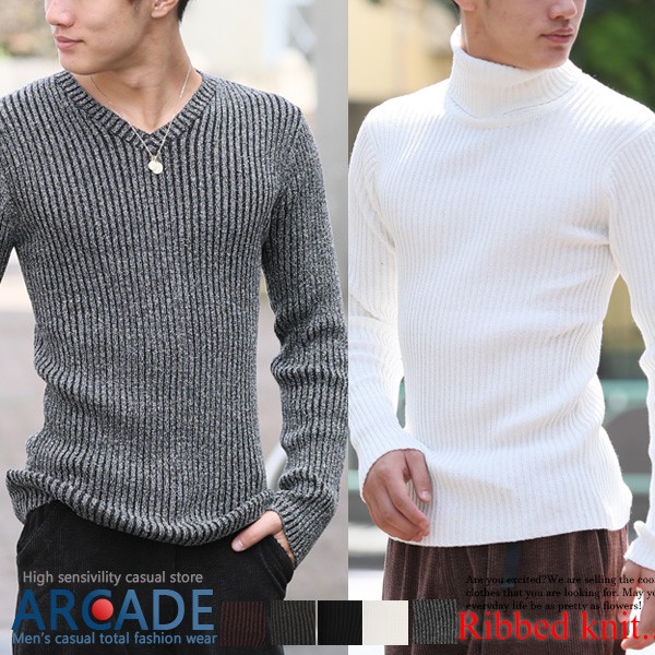 ニット メンズ Vネック タートルネック セーター メンズニット リブニット ニットセーター リブ編み タイト/爆買