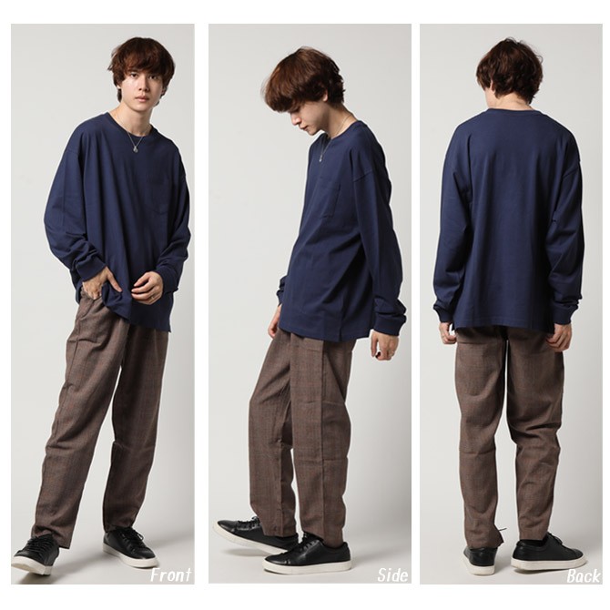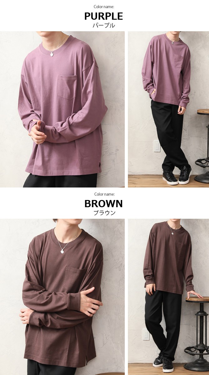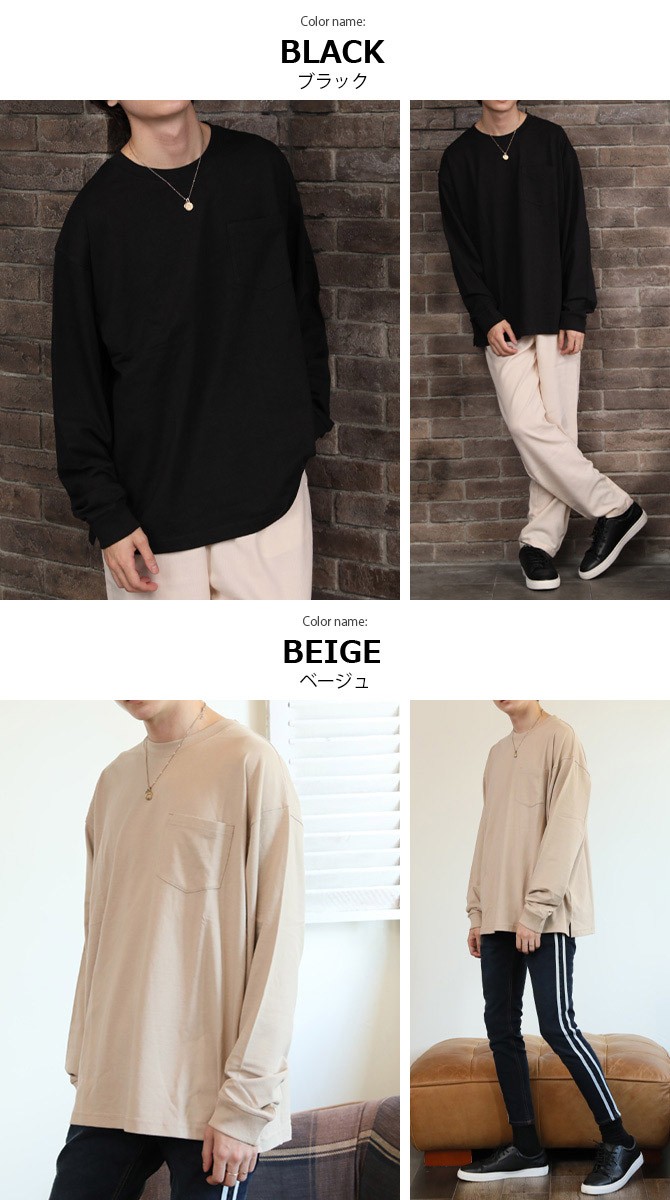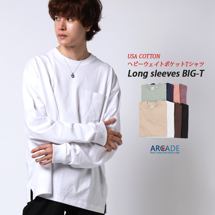 ヘビーウェイト 長袖Tシャツ USAコットン 胸ポケット 袖リブ サイドスリット ビッグロングTシャツ/爆買