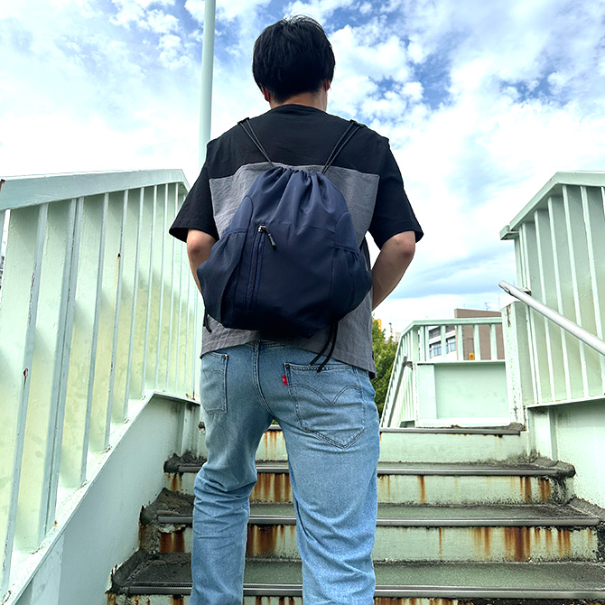 シンプルで実用的なナップサックは、軽快で使い勝手抜群!