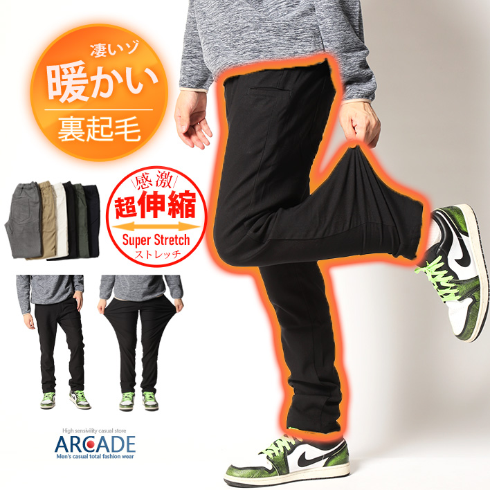 暖パン メンズ ストレッチ 暖かい ズボン チノパン 防寒 裏起毛 裏フリース 感激ハイテンションストレッチ スマポケ スキニー ボトムス あったかパンツ 冬/爆買