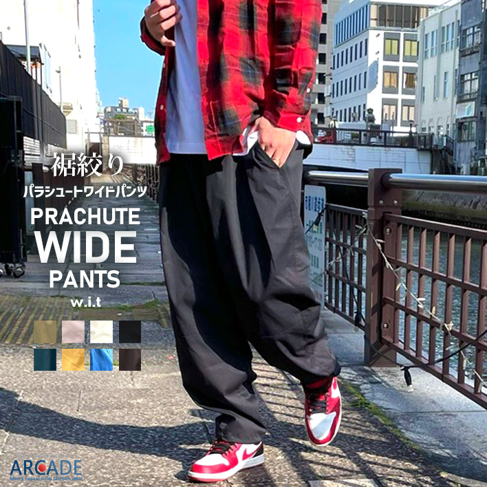 ワイドパンツ メンズ 裾絞り スーパーワイドパラシュートパンツ