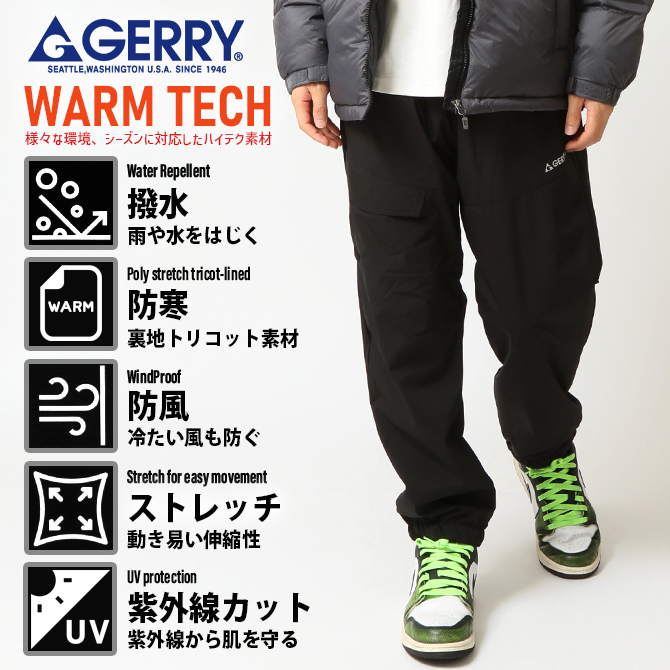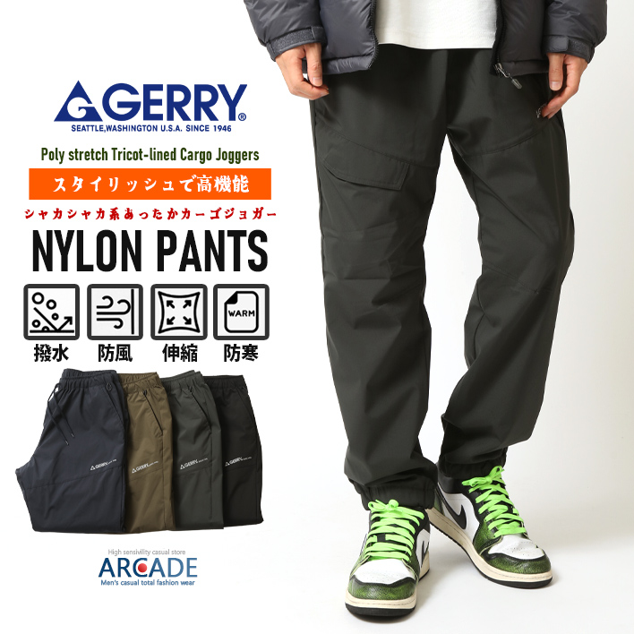 高機能 暖かい ストレッチナイロンパンツ GERRY ジェリー ジョガーパンツ メンズ 冬 撥水 防寒 防風 暖かい 裏地フリース 保温 シャカパン シャカシャカ ズボン