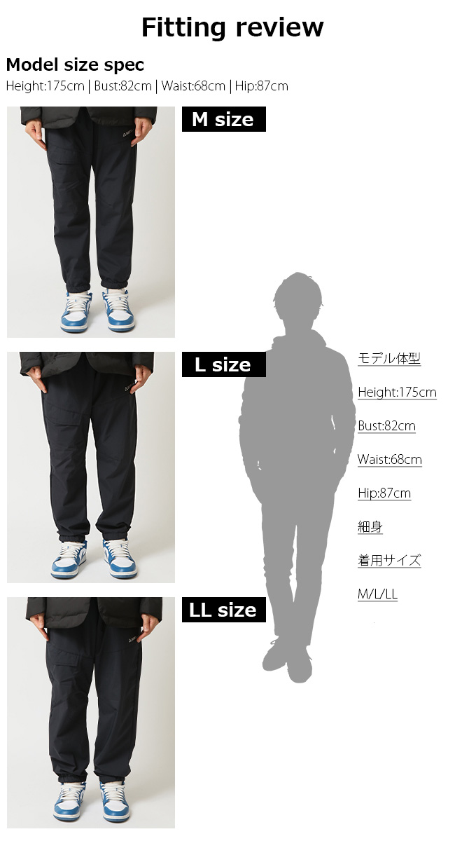 身長:175cm /B82 / W68 / H87 / 着用サイズ:Lサイズ