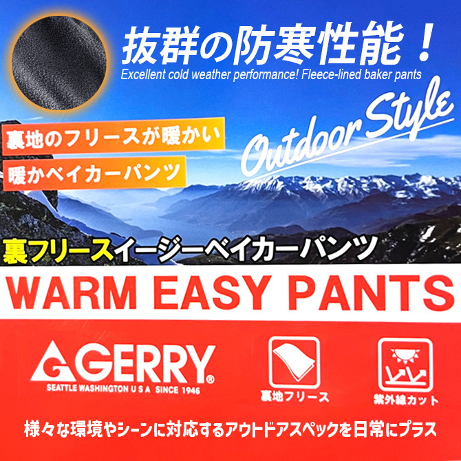暖パン 高機能 暖かい ズボン メンズ 裏フリースコットンナイロンパンツ GERRY ジェリー イージーパンツ メンズ 冬 あたたかい 保温 ベイカーパンツ/爆買