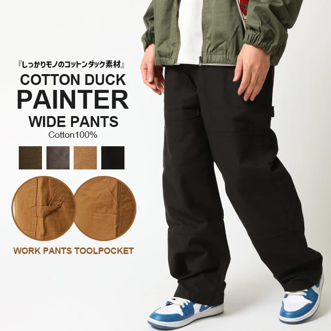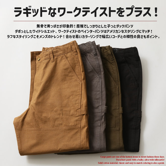 ワイドダックパンツ メンズ ペインターパンツ コットン ズボン ワークパンツ 丈夫 頑丈 アメカジ タフ ボトムス おしゃれ ストレート ミリタリー/爆買