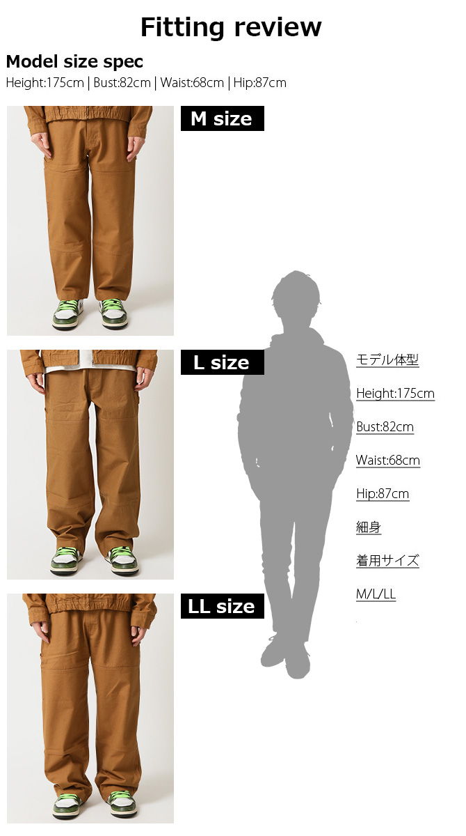身長:175cm / B82 / W68 / H87 / 着用サイズ:L