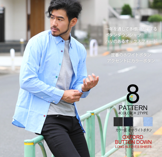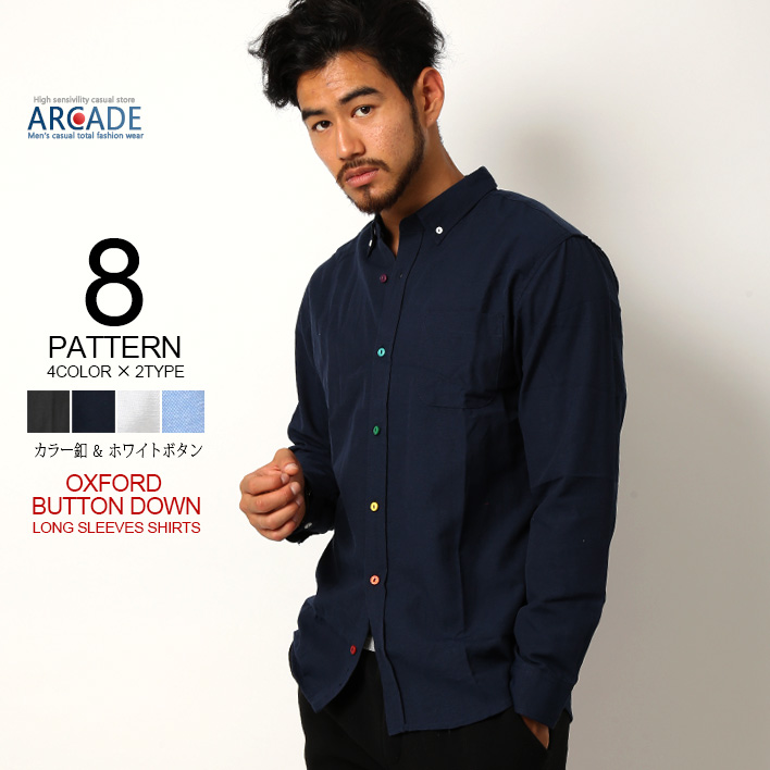 シャツ メンズ 長袖 トップス 長袖シャツ 選べる釦 オックスフォードボタンダウンシャツ 長袖 白シャツ カジュアルシャツ トップス/爆買