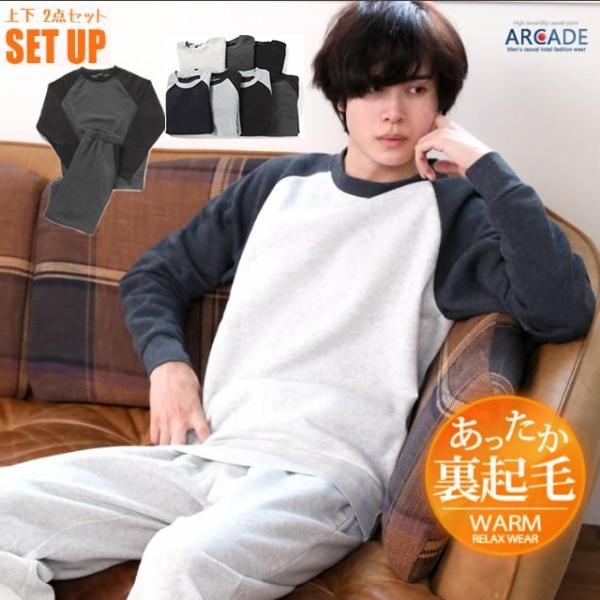 暖かい 裏起毛 上下セット スウェット ズボン メンズ トレーナー ラグラン スウェットパンツ パジャマ ルームウェア 部屋着/爆買