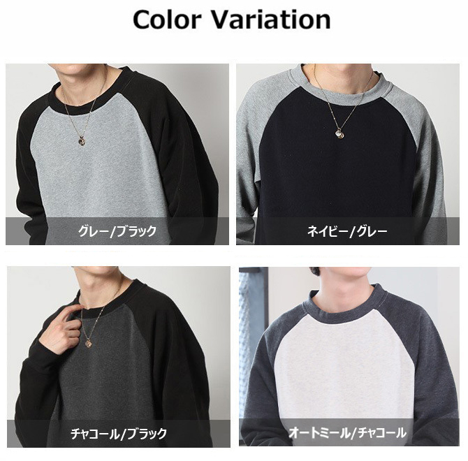 ブラック×グレー、グレー×ブラック、ネイビー×グレー、チャコール×ブラック