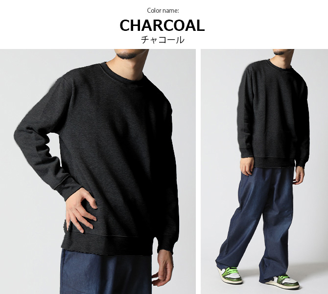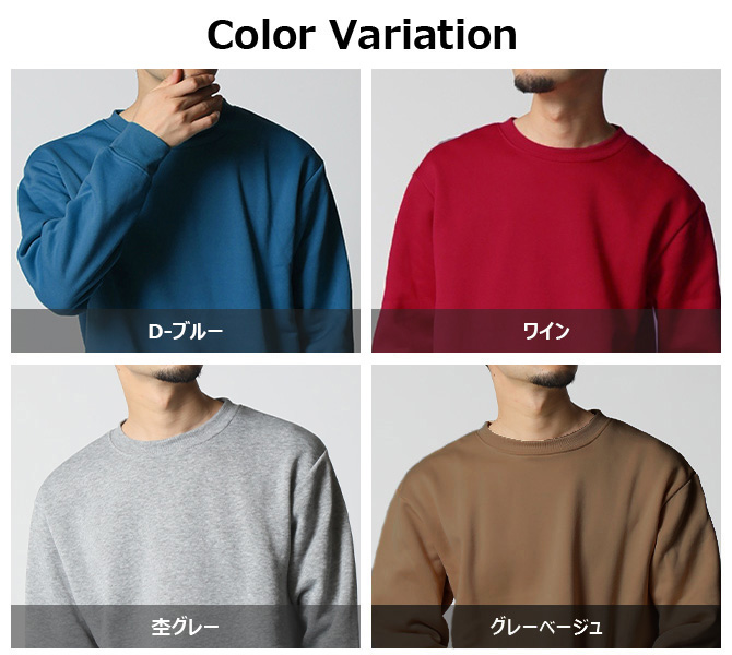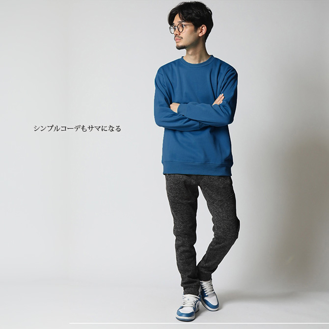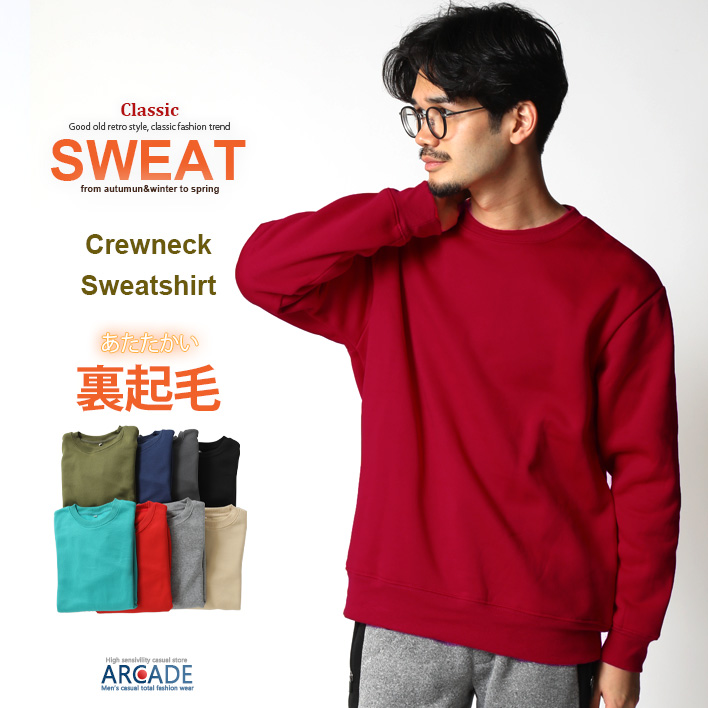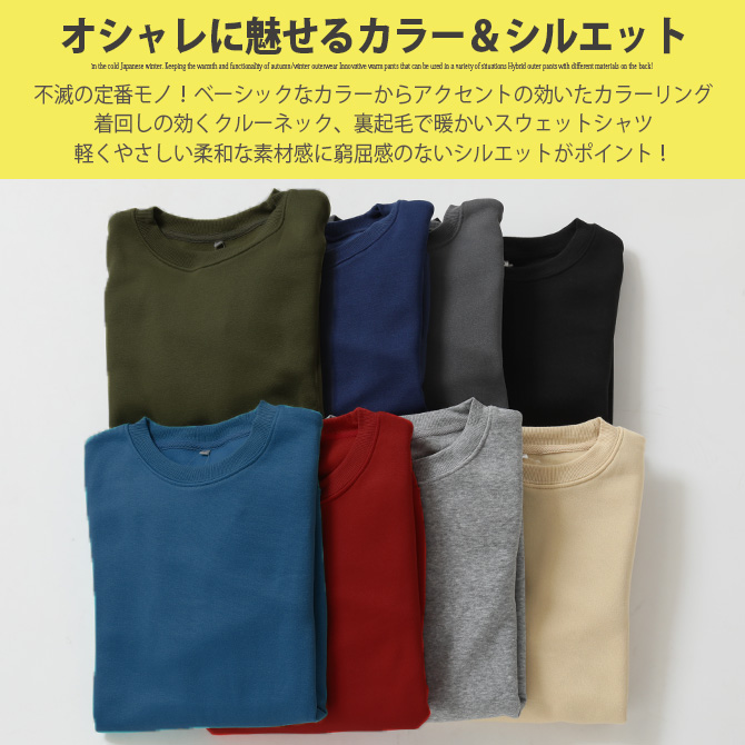 着回しの効くクルーネック、裏起毛で暖かいスウェットシャツ