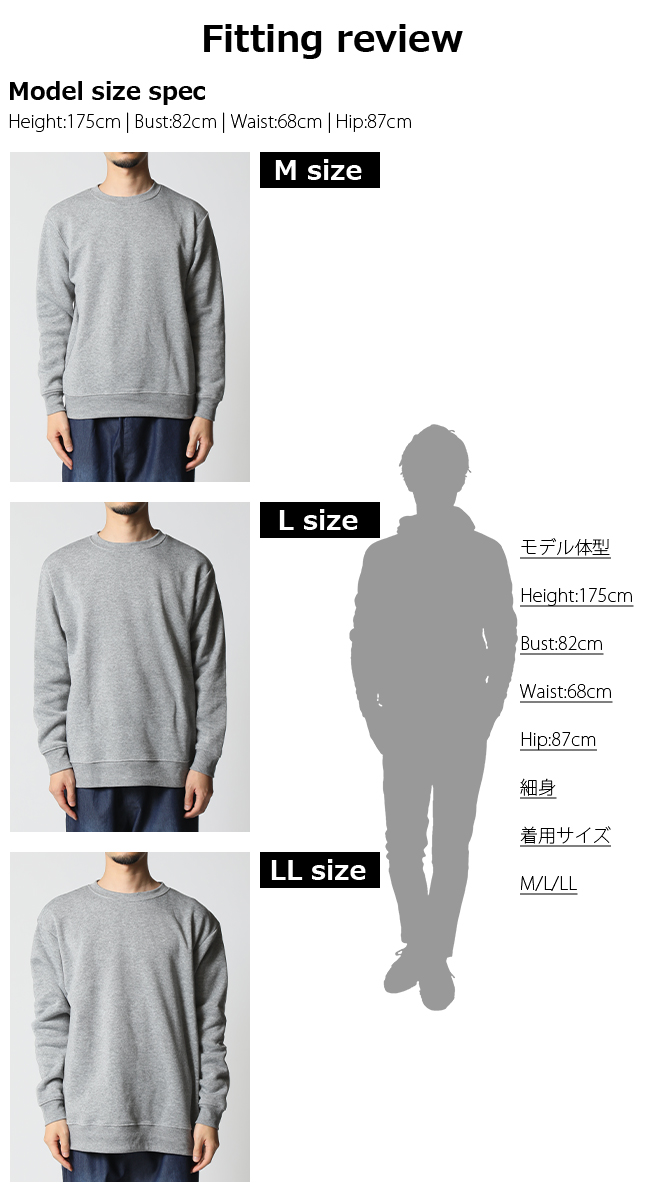 身長:175cm / B82 / W68 / H87 / 着用サイズ:L