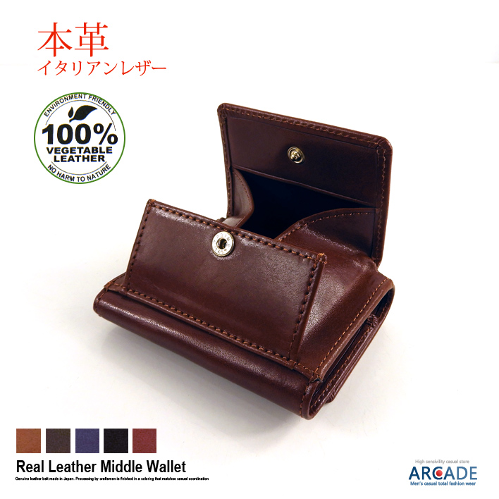 イタリーレザー コンパクト 三つ折り 財布 メンズ YANKEE 社製 イタリアンレザー 小銭入れ付き/爆買