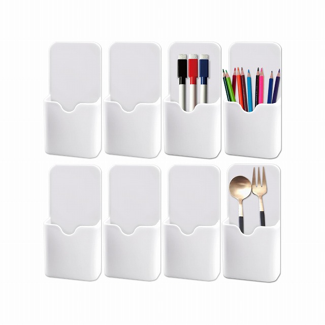 ペン以外にもちょっとした小物をサッと片づけたいときに便利。冷蔵庫や金属面に張り付くので場所を選びません。