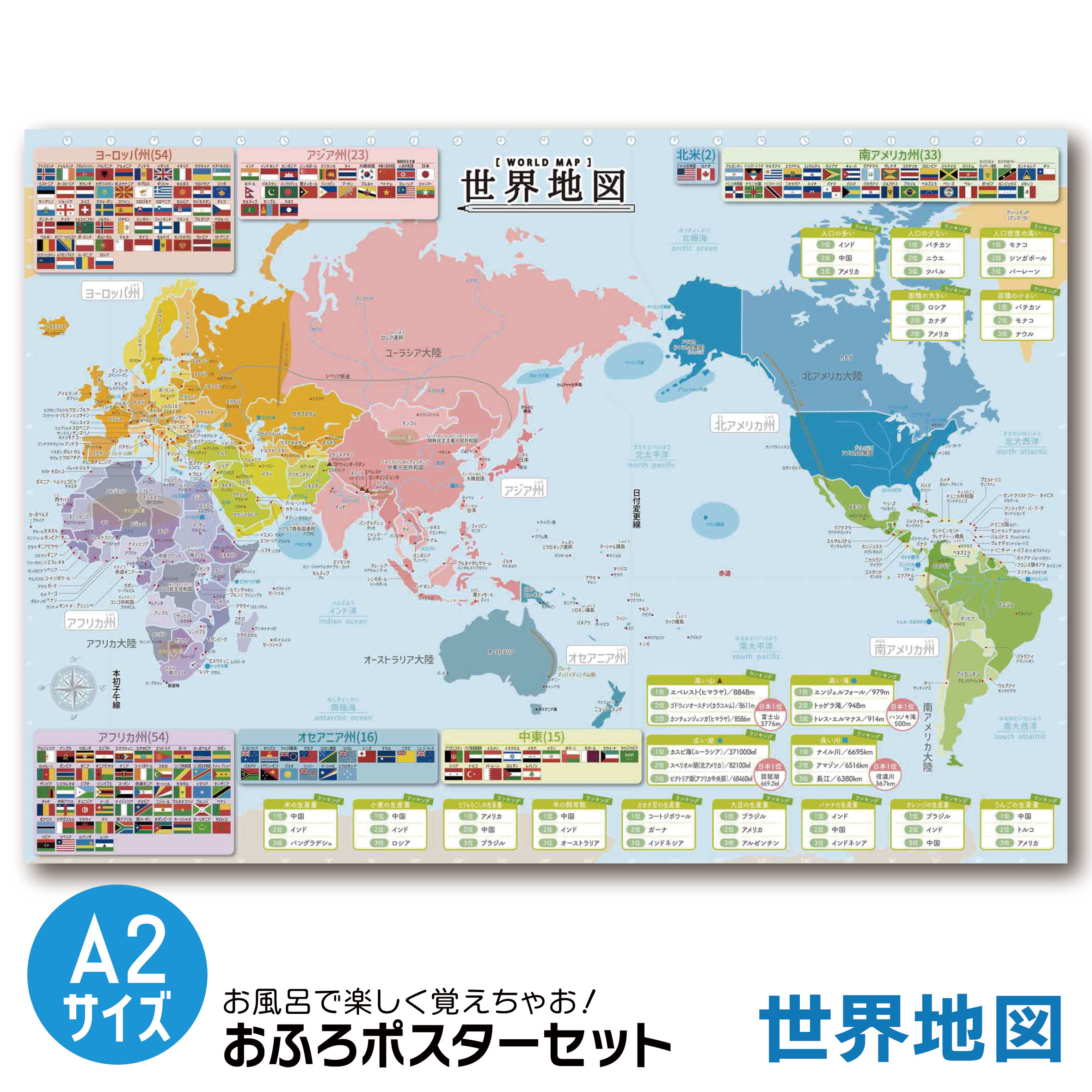 お風呂ポスター 世界地図 A2サイズ