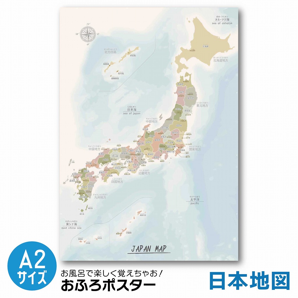 【海洋】お風呂ポスター 日本地図 A2サイズ(420×594mm) 海洋デザインの日本地図のお風呂ポスターです。