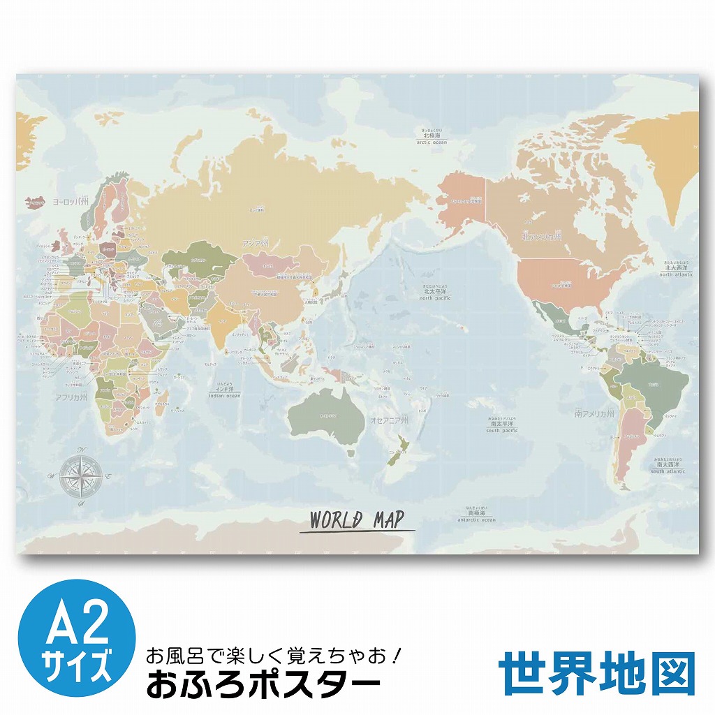 【海洋】お風呂ポスター 世界地図 A2サイズ(420×594mm) 海洋デザインの世界地図のお風呂ポスターです。海のグラデーションカラーを調節し、深さを感じる海を表現しました。 青色のトーンは目に優しく落ち着いた雰囲気。