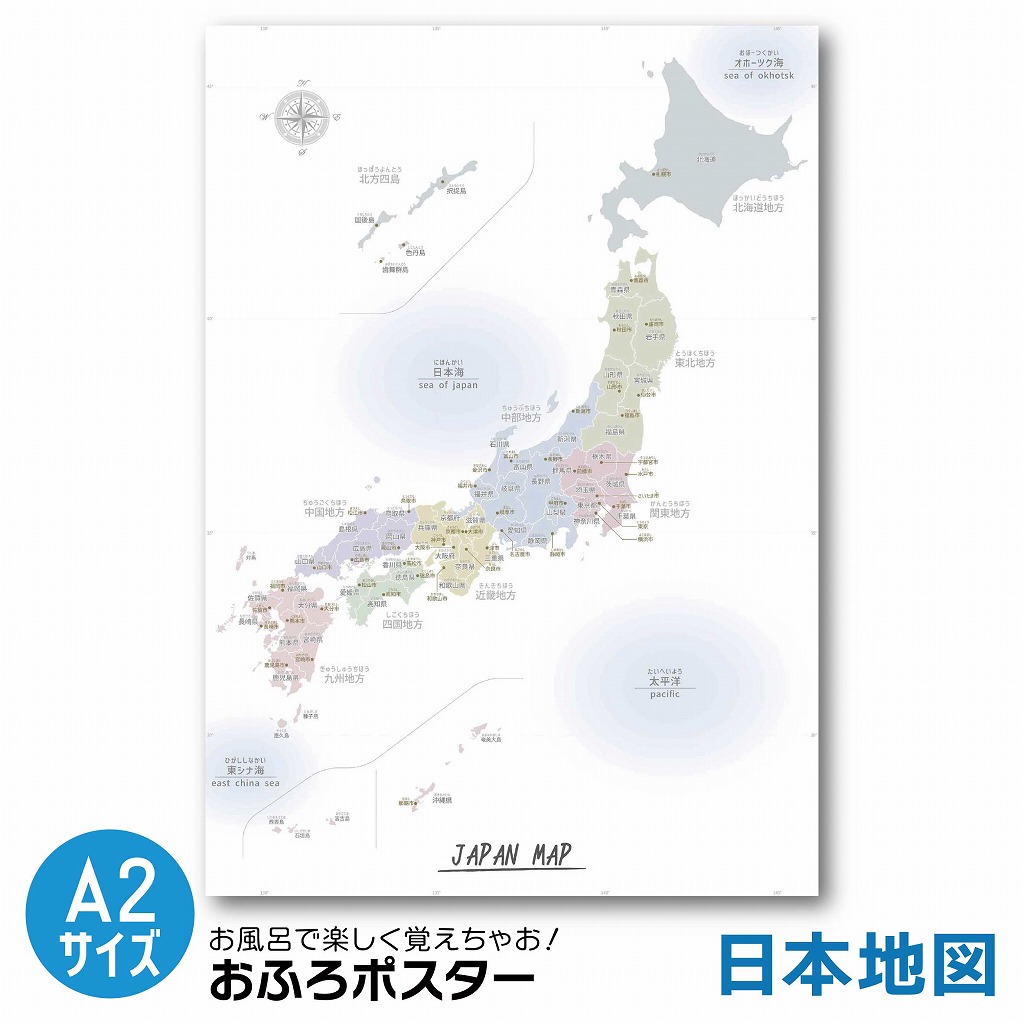 【パステル】お風呂ポスター 日本地図 A2サイズ(420×594mm) パステルデザインの日本地図のお風呂ポスターです。