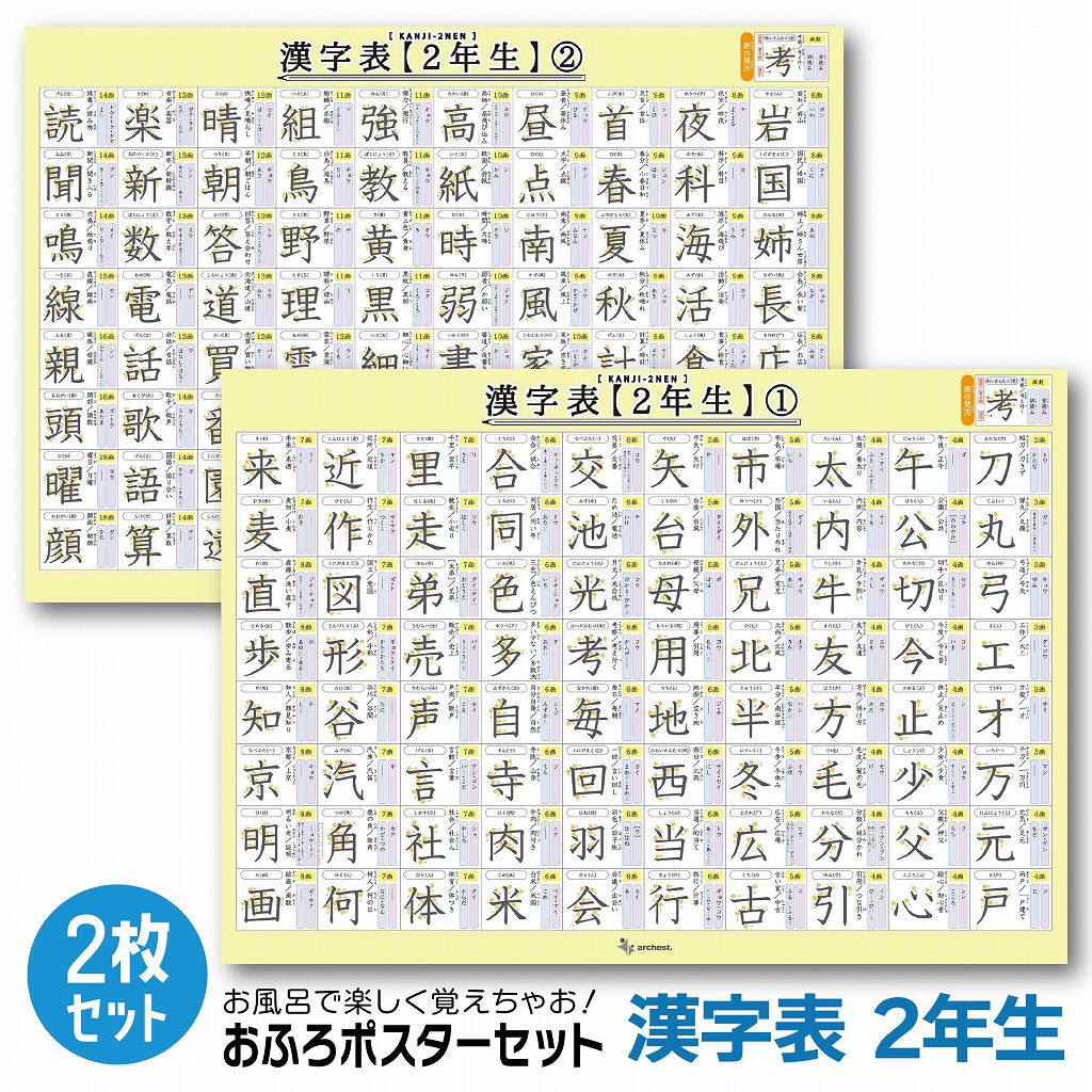 お風呂ポスター 2年生 漢字表 2枚入り