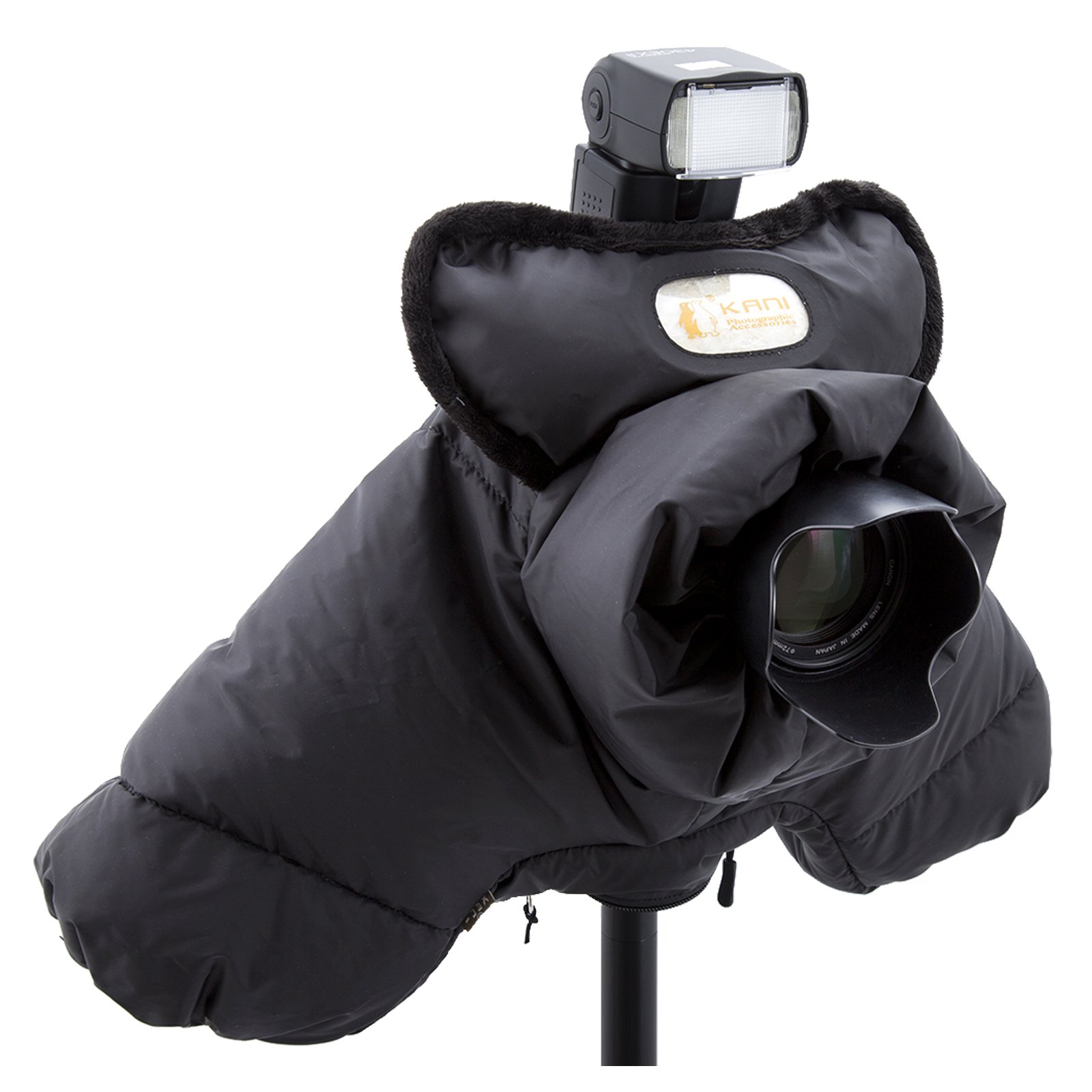 商品名:KANI 三脚アクセサリー ダウン防寒カメラカバー AC-004 BLACK 一眼レフ用 ポリエステル製 中綿ダウンフェザー 390851