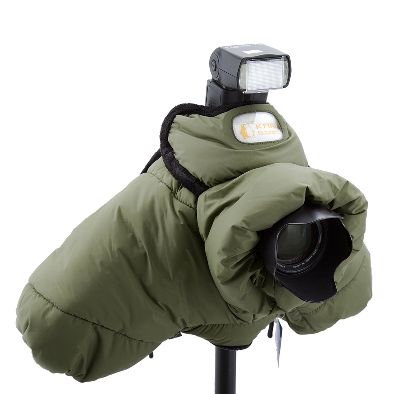 商品名:KANI 三脚アクセサリー ダウン防寒カメラカバー AC-004 BLACK 一眼レフ用 ポリエステル製 中綿ダウンフェザー 390851