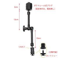 撮影機材固定用の28cm フレキシブルマジックアームとなります。(360度回転ボールヘッド 自由に傾斜) 耐重量:1kg 取付:ダクトレール用
