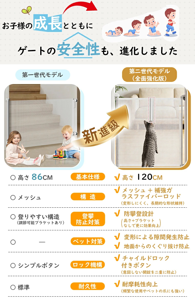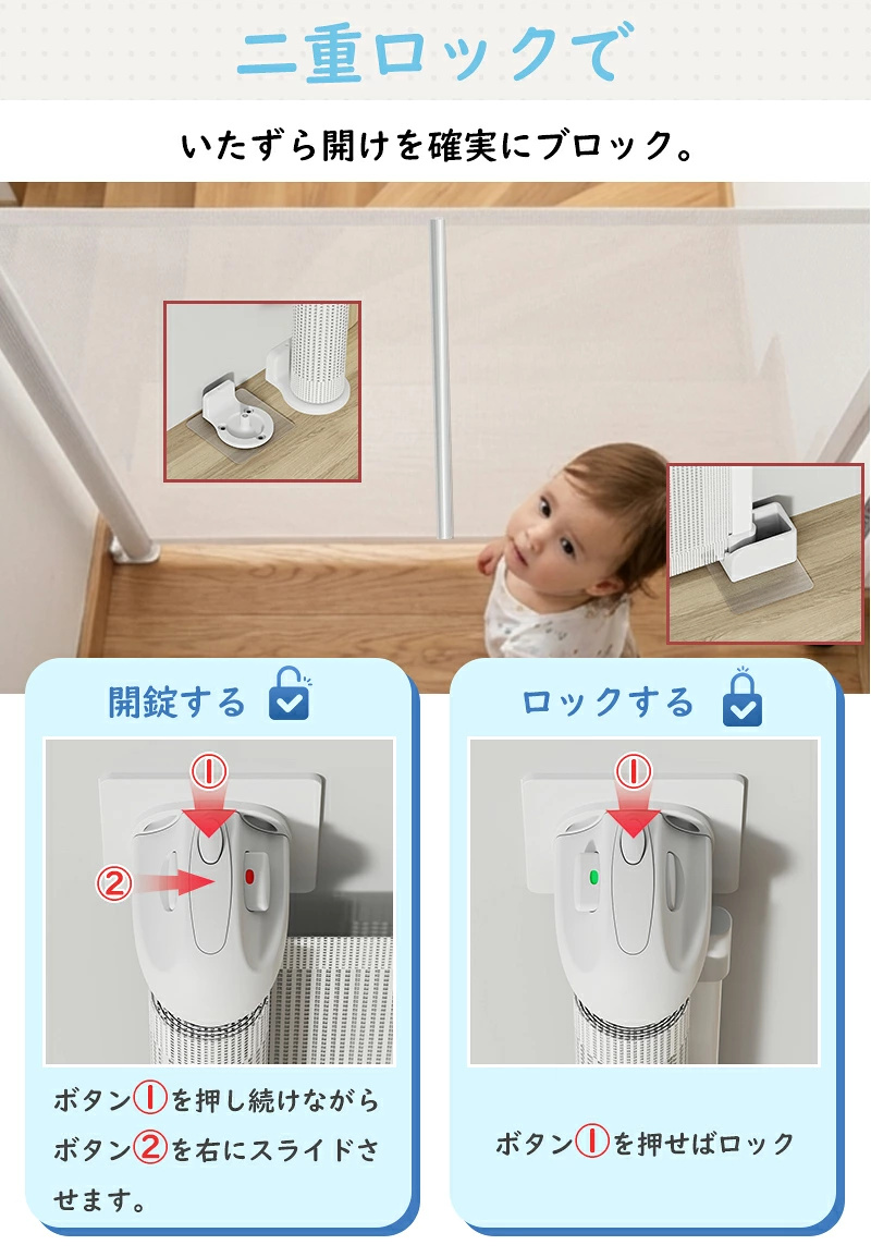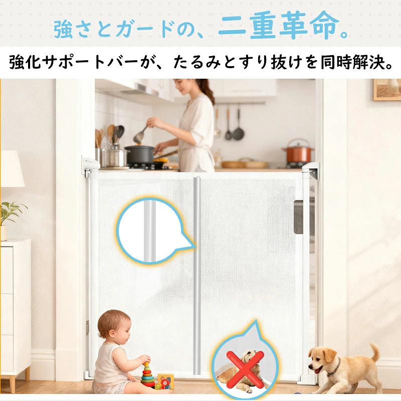 ・底部の隙間を解消し、赤ちゃんやペットのくぐり抜けを防止