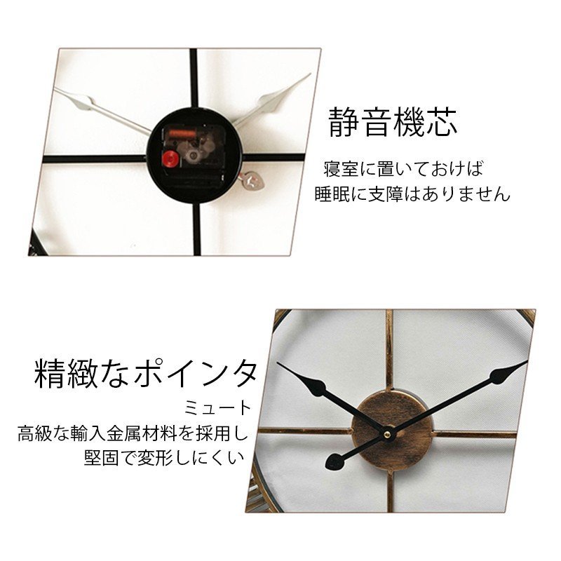 壁掛け時計 おしゃれ 掛け時計 北欧 おしゃれ 40cm/60cm 静音 ウォールクロック アンティーク かけ時計 大きい アナログ ローマ数字 文字盤 時計 欧風