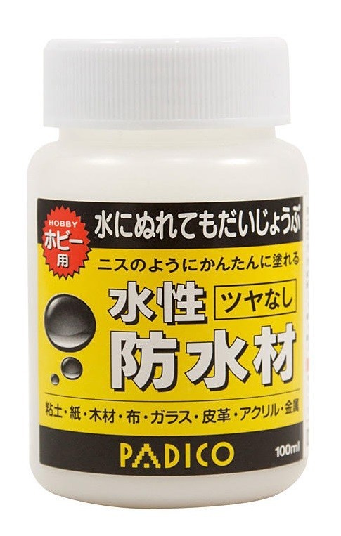 作品の表面に塗るだけで、強力な防水効果を発揮する特殊樹脂の水性防水塗料。
