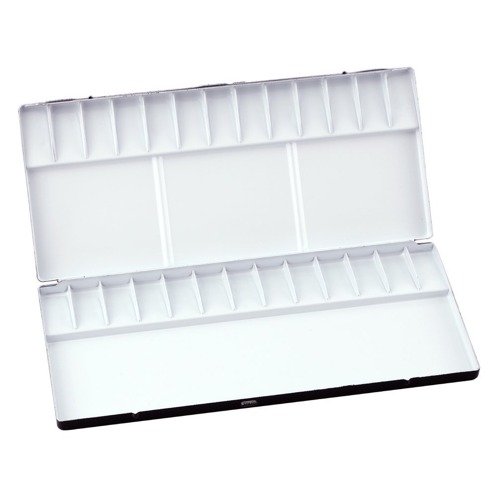 水彩やデザイン用の絵具は油絵具と比べやわらかく、しかも水でうすめて使用することが多いのでパレットは色別の仕切りや、混色皿の仕切りがついたものが便利です。