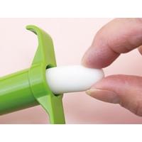 筒の先端にチップを入れ、粘土を入れてピストンで押し出します。