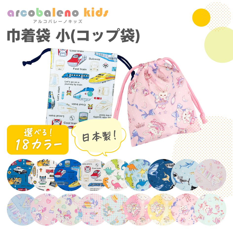 巾着袋 小 コップ袋 コップ入れ 入園 入学 おしゃれ 保育園 幼稚園 小学校 通園 通学 子供用 男の子 女の子 日本製 車 電車 恐竜 ユニコーン ウサギ ユメカワ