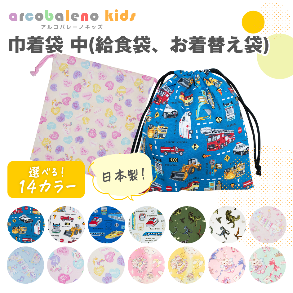 巾着袋 中 給食袋 体操着袋 体操服入れ お着替え袋 入園 入学 保育園 幼稚園 小学校 通園 通学 子供用 男の子 女の子 車 電車 恐竜 ユニコーン