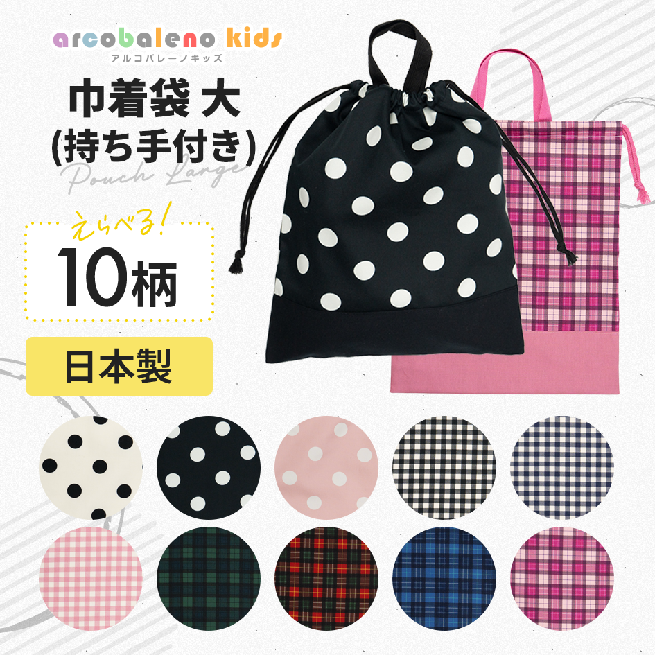 【日本製 縫製工場直売】巾着袋大 体操着袋 体操服入れ お着替え袋 入園入学 保育園 小学校 通園通学 子供用 男の子 女の子 ドット ギンガムチェック 爆買