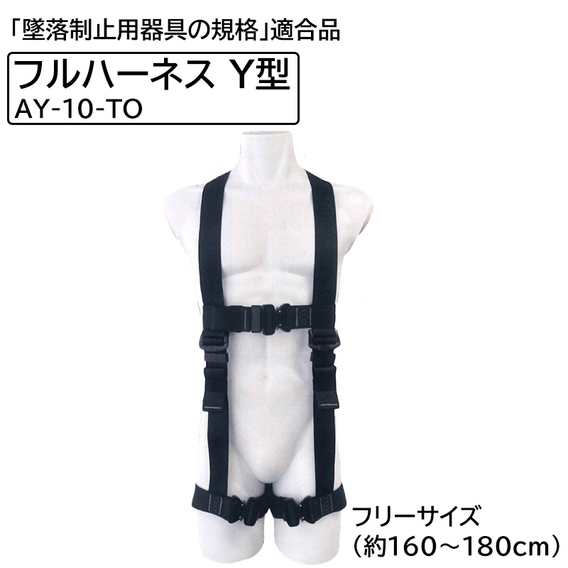 フルハーネス Y型 胸・腿ワンタッチバックル フリーサイズ(約160~180cm)堕落制止用器具の規格適合品 黒 取寄品 NRK AY-10-OT